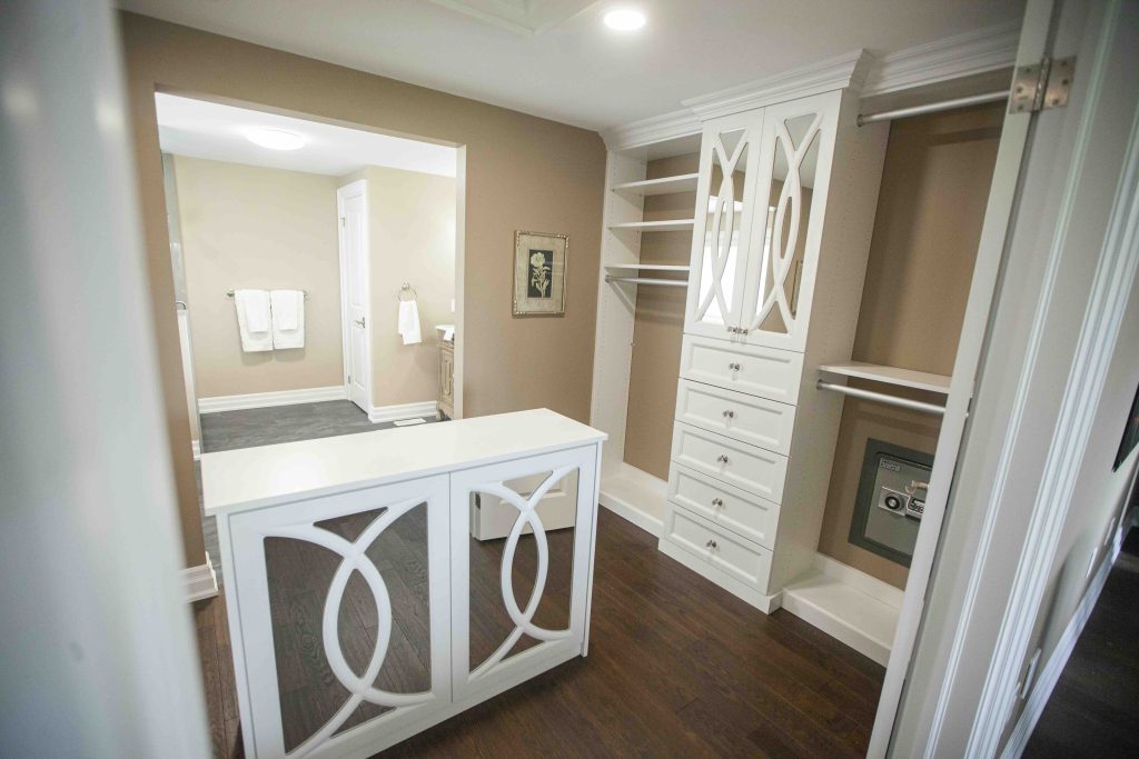 On Holmes & Holmes season 2, we built a stunning walk-in closet with seating, mirrors and even a safe for valuables.