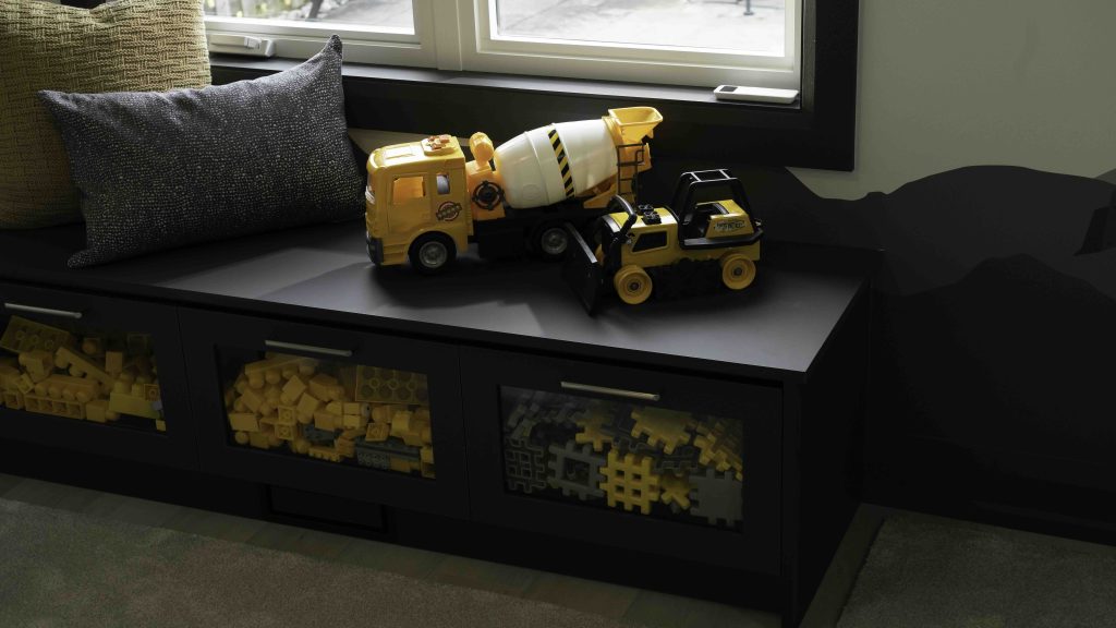 We created custom storage for our super fan, Michael from Holmes on Homes: Building a Legacy season 1. The storage unit, great for toys, is also a bench.